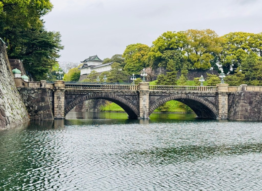 Meganebashi bridge in the foreground and Nijubashi bridge behind