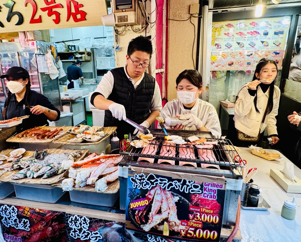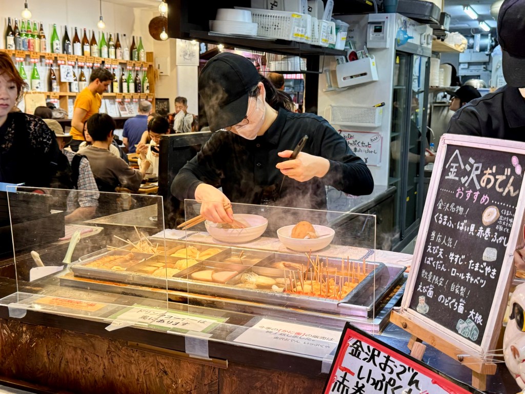 Omicho Market, Kanazawa’s largest fresh food market since the Edo period, has transformed into a vibrant and bustling network of covered streets. With over 170 shops and stalls, it features fishmongers selling their bounty of delicious fresh seafood caught in the nearby Sea of Japan. In addition to local seafood and produce, visitors can also discover a variety of items such as flowers, clothing, and kitchen tools.