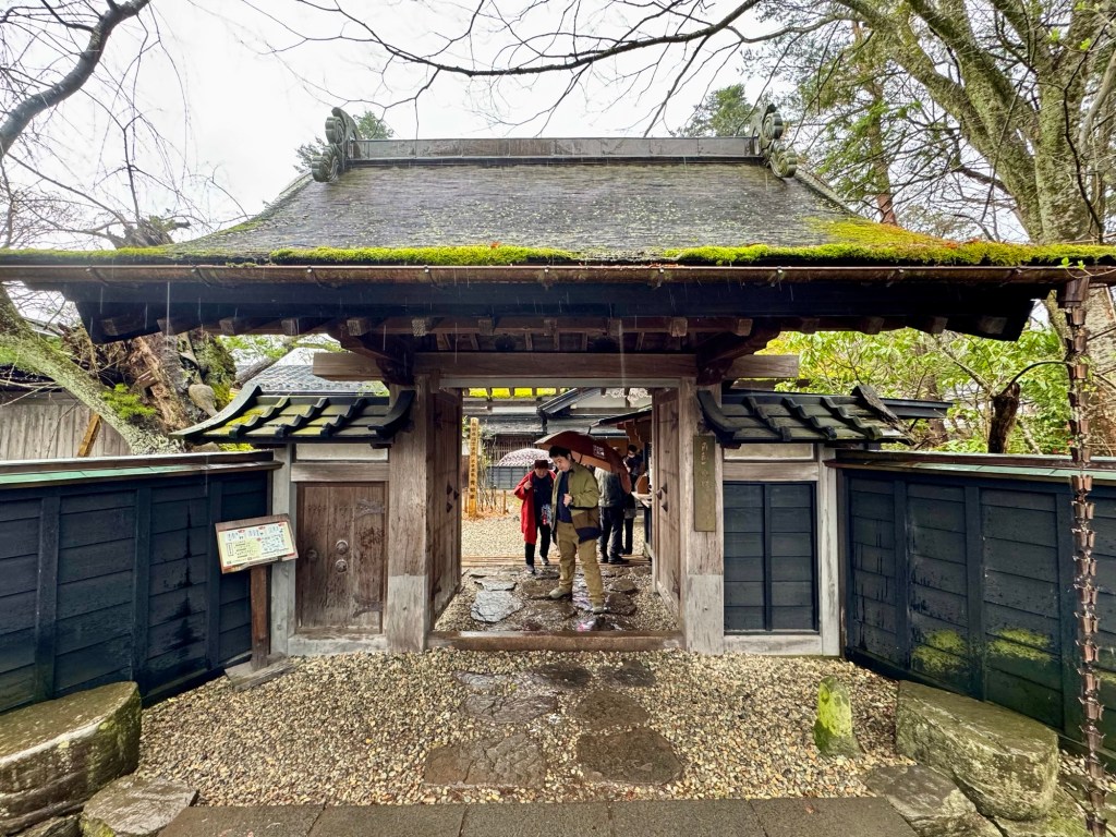 Our first stop was at the home of the descendants of the Ishiguro family. According to signage, the Ishiguro family residence is considered the most prestigious samurai house in Kakunodate and the family once held important roles in the government. The Main House is over 200 years old and the oldest samurai residence. It remains inhabited by direct descendants of the family while being partially open for public viewing. When we entered the house, everyone removed their shoes as is the custom in Japan.