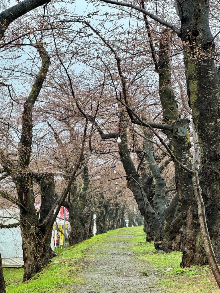 On my way back to the bus, I made a detour to check out the cherry trees along the Hinokinai River embankment. With more than 400 cherry trees stretching approximately two kilometers, the blooms on the trees droop down (when in bloom) to create a long tunnel perfect for walking under. Today it was still impressive but not so beautiful. The Beware of Bears sign would likely be more scary when there are cherries on the trees. No bears sighted today!