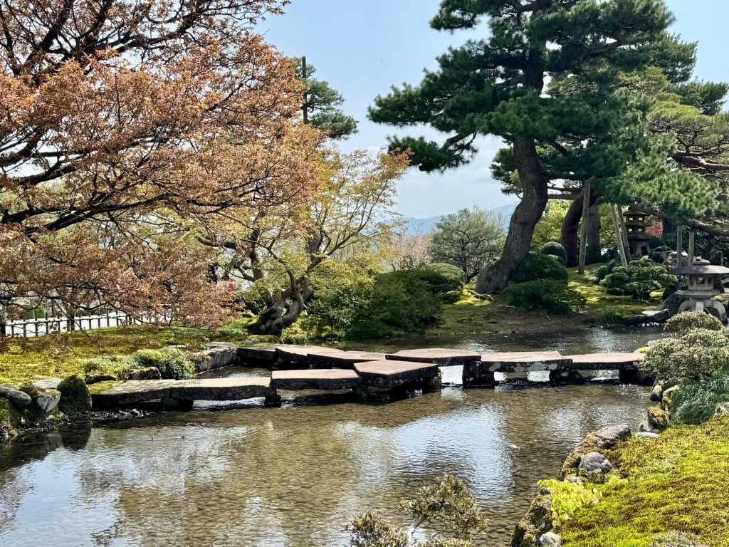 Gankobashi, also known as Flying Wild Geese Bridge, is a stone bridge whose unique shape symbolizes a flock of wild geese flying in formation.