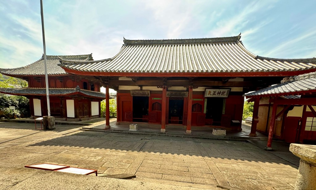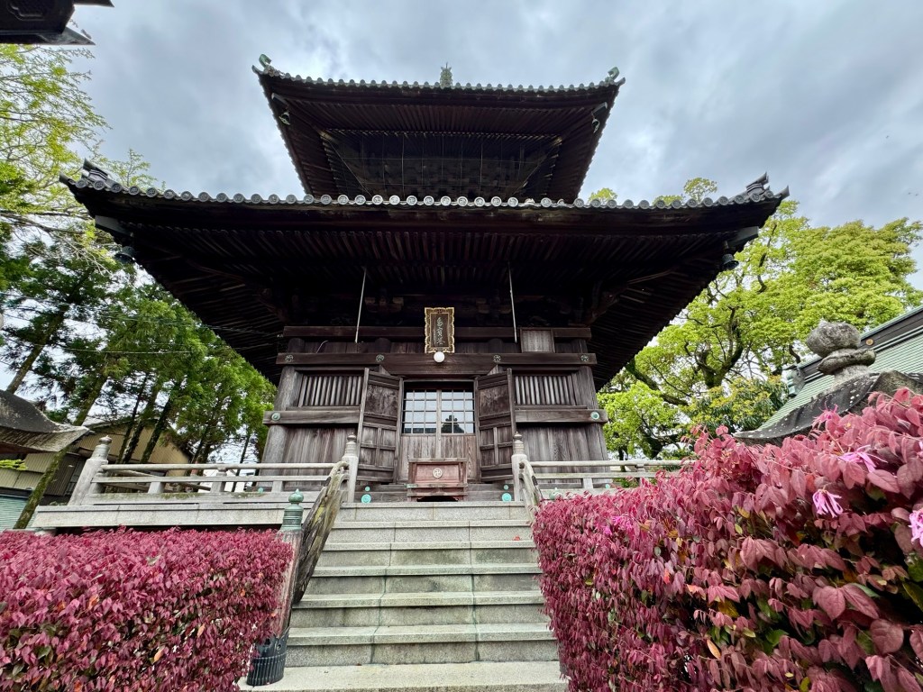 Our first stop is Tatsue-ji, the Koyasan Shingon temple, which is the 19th temple on the Shikoku 88 pilgrimage. According to legend, the temple was founded by Gyoki at the behest of Emperor Shomu, who reigned from 724 to 749. Kobo Daishi visited this temple in 815. Back then, the temple was situated in a picturesque location, approximately 400 meters west of its current site, nestled near the mountains until it was burned in a fire.