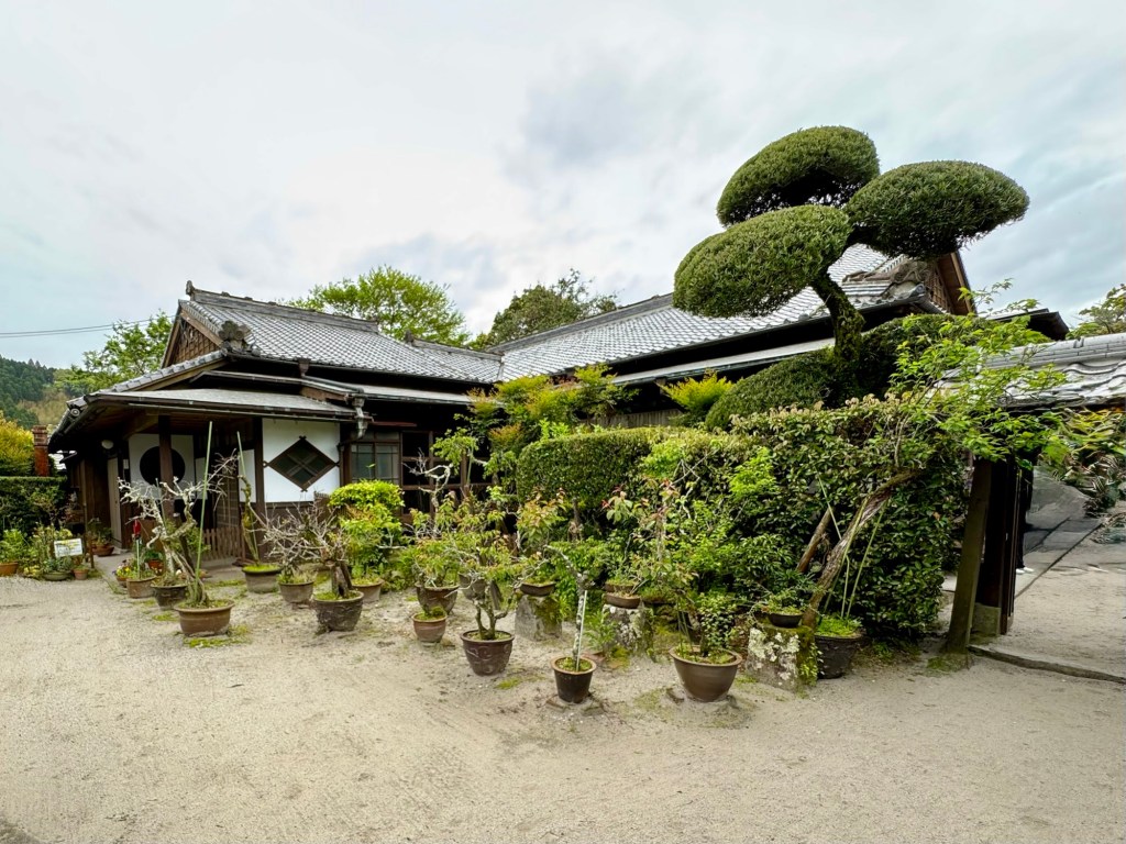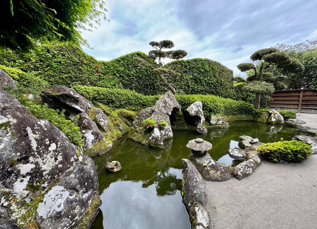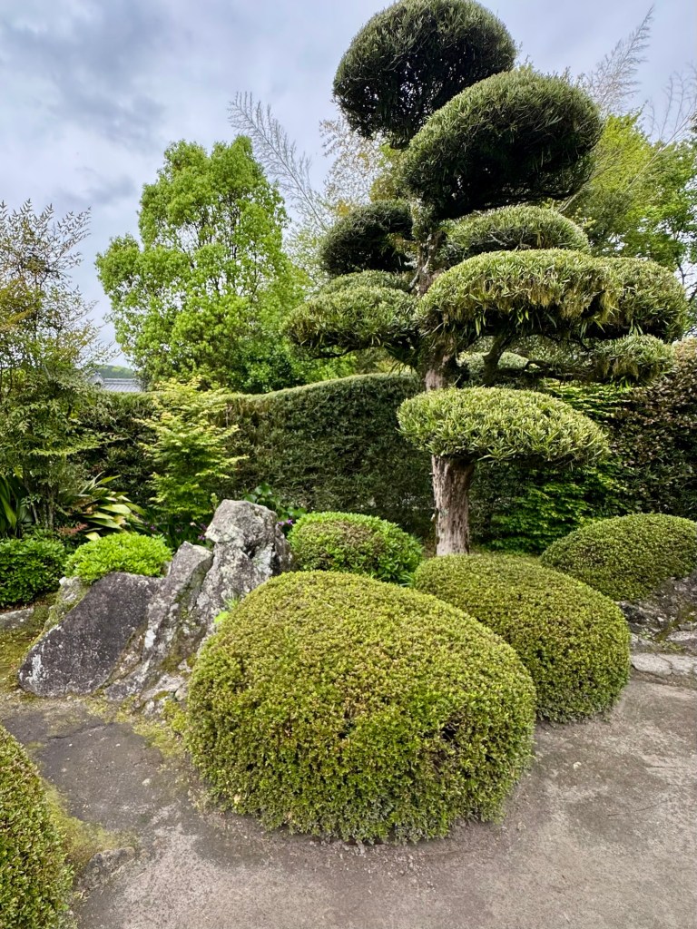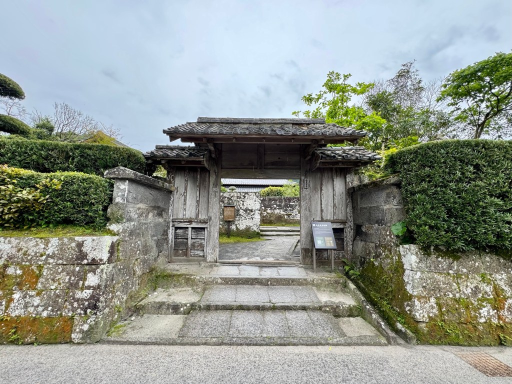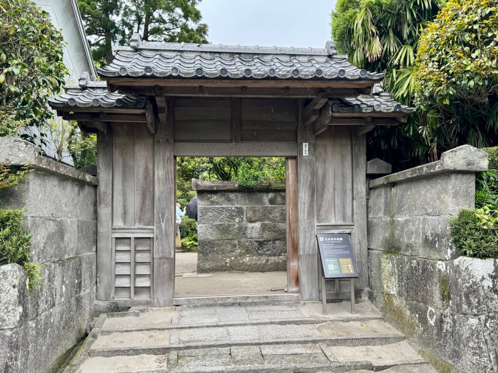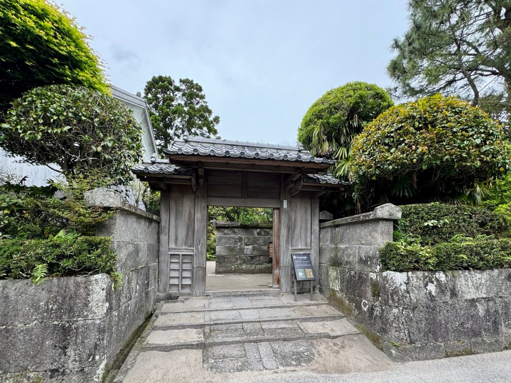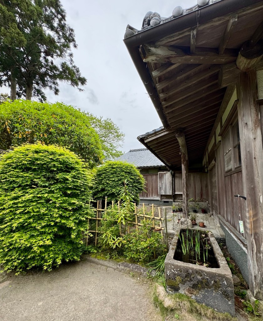 Saving the best for the last, Mori Shigemitsu’s Garden was next. The gate here was even fancier with tiled shoulders and arms; the most ornate in the Fumoto. Clearly the Mori family was one of the most important among the vassals of the Shimadzu clan. The living quarters and tea storehouse were built in 1741 and the descendants still live in the house and farm green tea which we had a chance to sample.