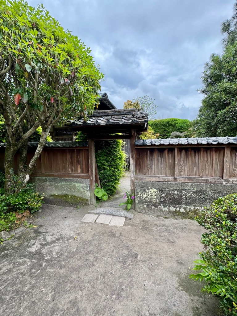 We stroll along the Honbaba promenade framed by stonewalls and hedges. Our first stop is the Sata Mifune’s Garden. The grand gate with Sodeyane (eave roof) at the entrance of the residence announces the prestige of the family.