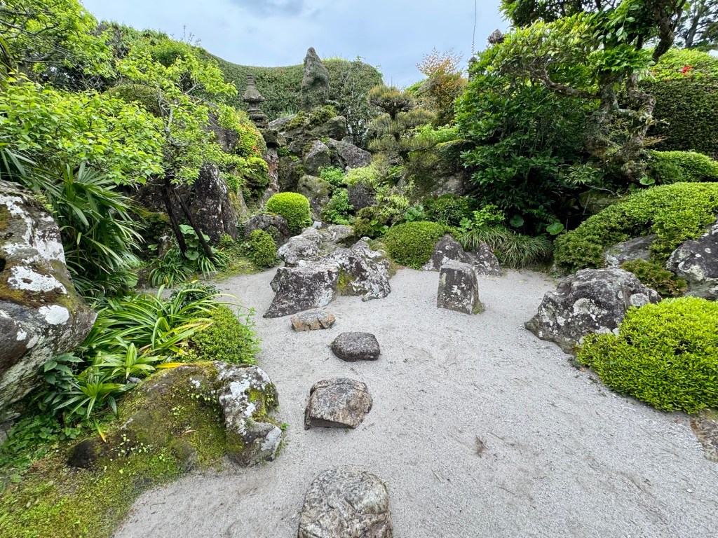 A little further down the promenade , we arrive at Sata Tamiko’s Garden; a world of huge rocks and strangely shaped stones arranged to make visitors feel as if they are wandering remote mountains and secluded valleys.