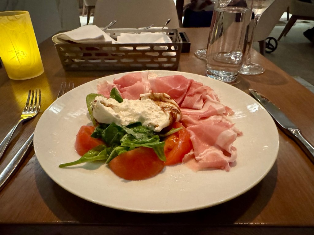 Dinner was great; beef carpaccio, burrata salad with piles of salty prosciutto, mezzelune stuffed with ricotta and spinach topped off with cheese cake with pistachio ganache and white peach sorbet. I’m starting to worry about who will be making my meals when I get home!!