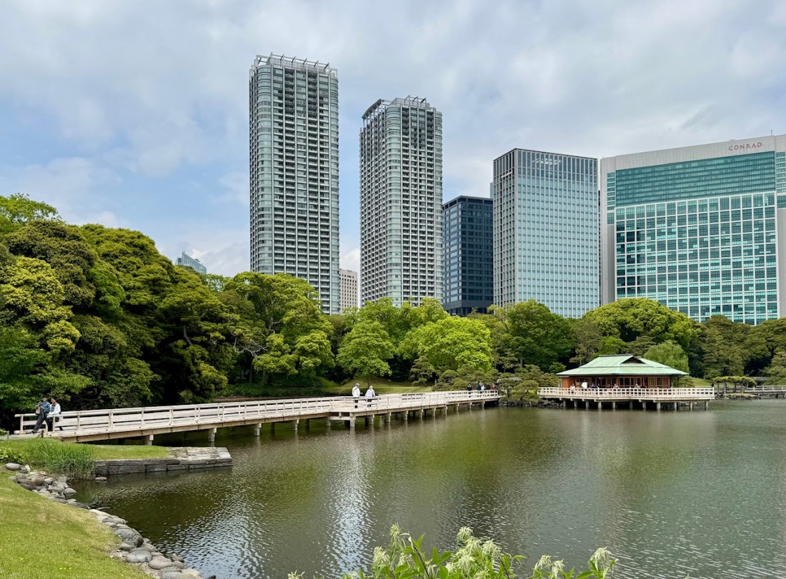 Once the gardens of successive Tokugawa shoguns, Hama-rikyu Gardens features a seawater pond whose levels change with the tides, and two kamoba, or duck hunting sites, within the grounds. It originally functioned as a dejiro, or branch castle, of Edo Castle in the Edo Period.