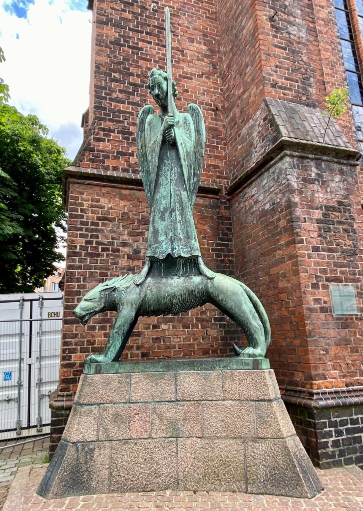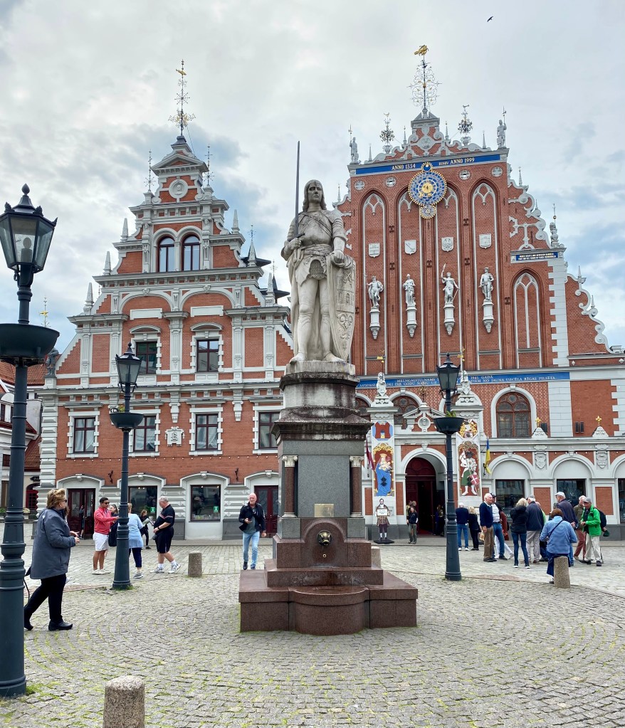 The tour is done so we thank Malin and head off to see the changing of the guard @ 12:15 just as it starts to rain. Undeterred, we join the throngs at the palace in our rain gear. After the ceremony we headed back to Stortoget for lunch to wait out the rain! Enroute we passed a statue depicting Saint George slaying a dragon. The legend of Saint George dates back to the crusades. Saint George is said to have saved an entire village in Libya from a dragon provided they converted to Christianity first, of course. The statue is a replica – the original wooden version is in Storkyrkan church.