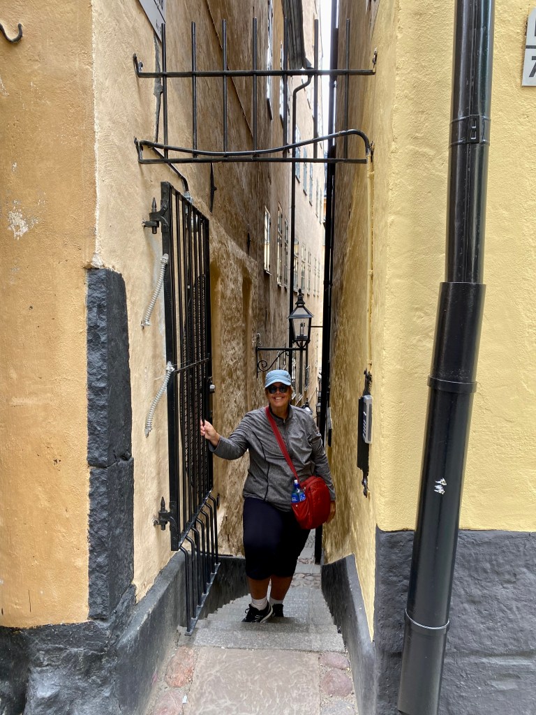 The Dawn docked at the cruise port in Stockholm early and I had a quick breakfast in the dining room before disembarking. Apparently the taxis didn’t get the memo about our arrival so it took a bit of time to get a cab to our Airbnb in Gamla Stan. Ken had assured me cars were allowed in the area until 11 am so I cajoled my driver to take me to the door though we did get dirty looks from the few pedestrians on the street.