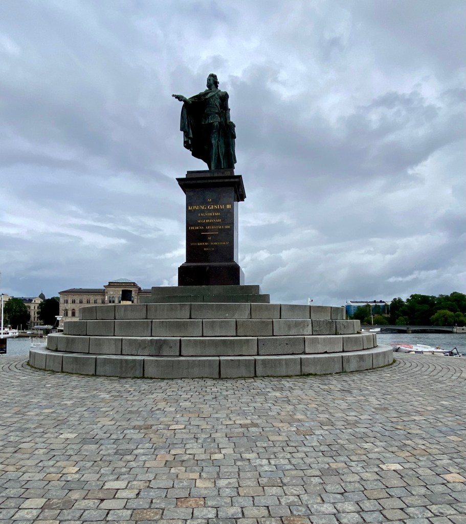 The weather cleared up a bit so we headed to the Vasa Museum, one of Scandinavia’s most visited museums checking out the sights on our way. On our travels, we passed a statue of King Gustav III (1746 -1792) of Sweden. It was erected by the citizens of Stockholm in 1790, hailing their still living king as law maker, victor and restorer of peace.