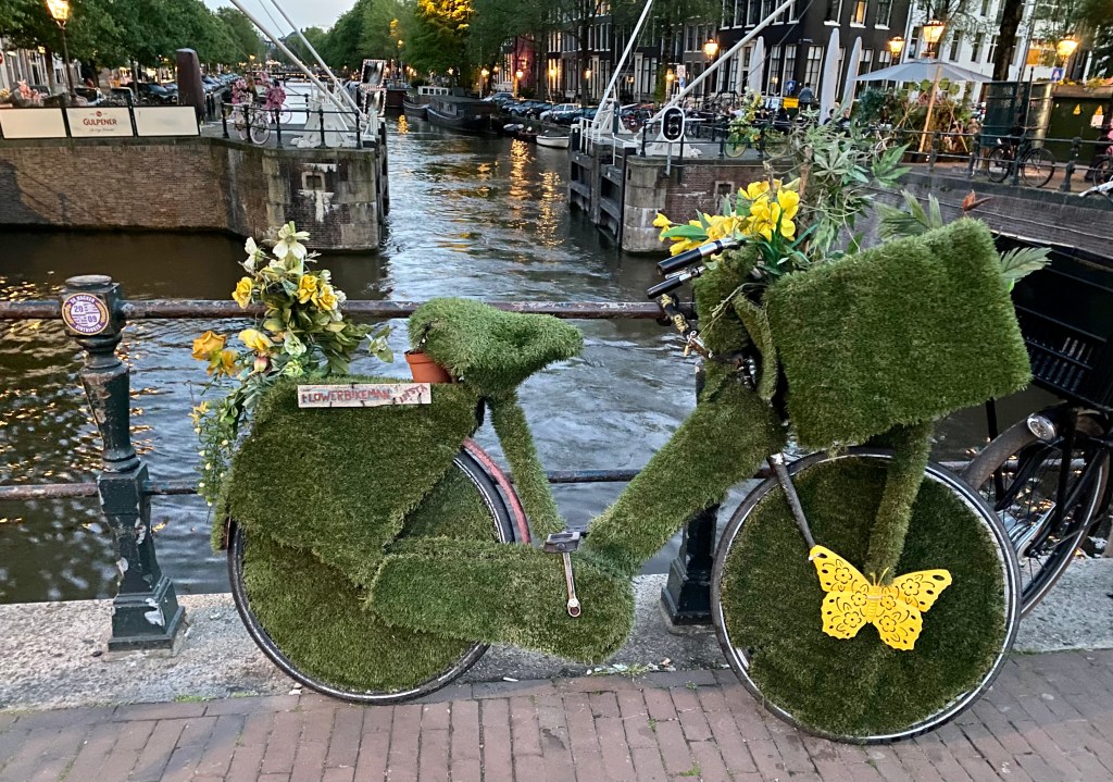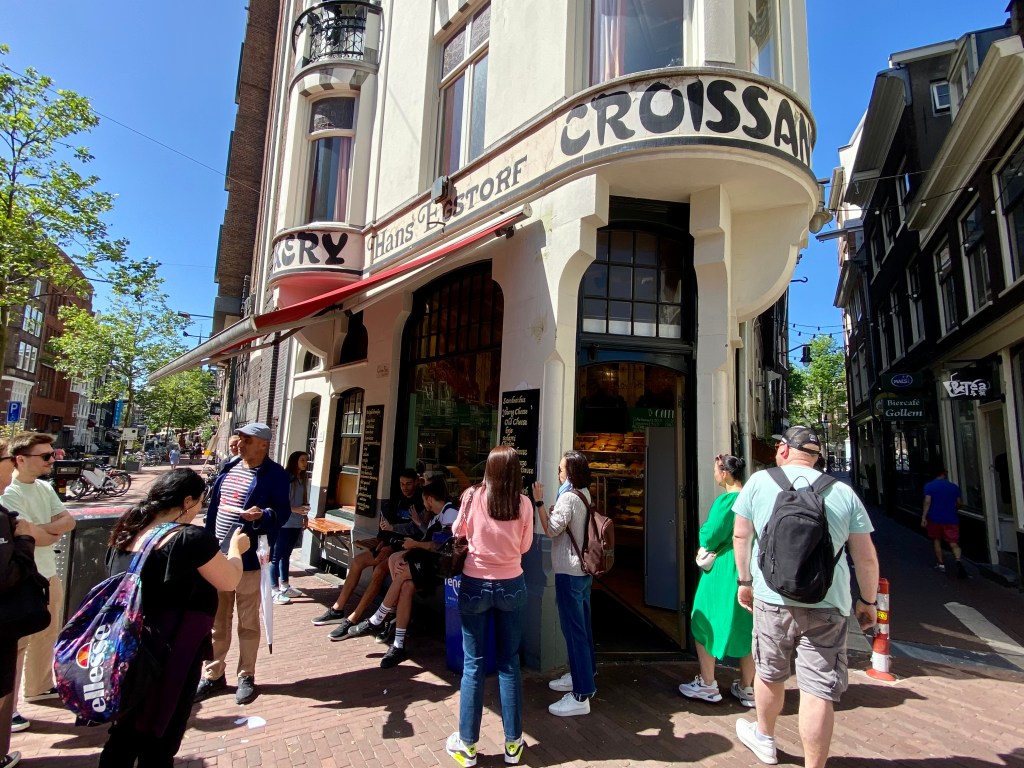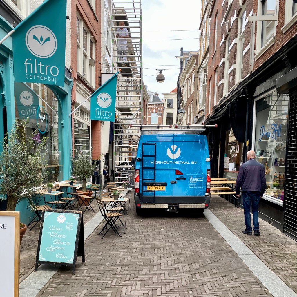 I find a nice bench in the back of the Grote Kirk to enjoy my picnic lunch with hungry pigeons as company. Sadly, when I finish lunch, I learn that the church won’t be open until Thursday afternoon. Undaunted, I take time to meander through the back alleys back to the Museum Sector. The alleys aren’t too wide as one van driver soon finds out. The best part was when he got out to move the scaffolding and the guy on it that was painting because his ladder was too wide!