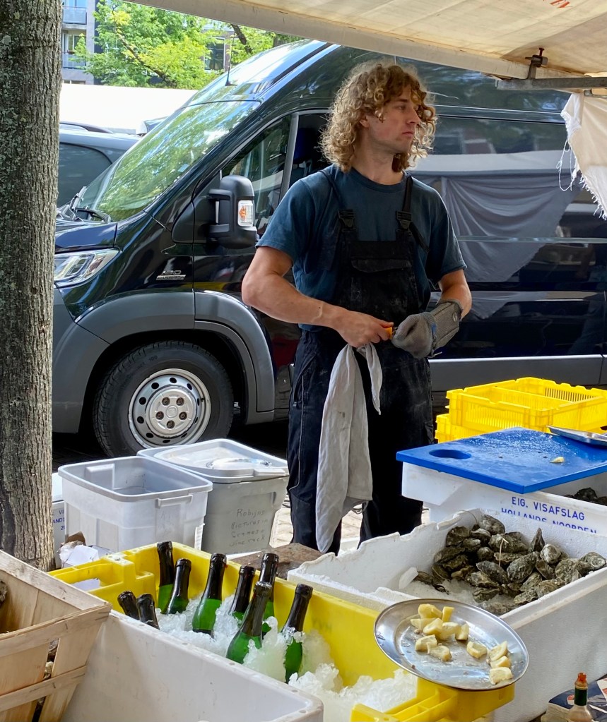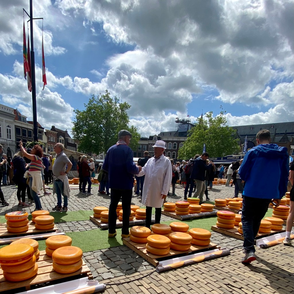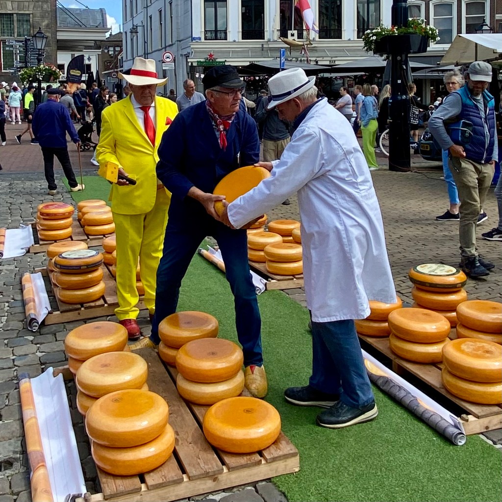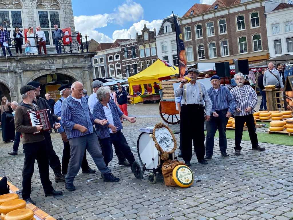 The cheese market is done by 12:30 and then the singing starts. A group of men sing sea shanties and other folk songs to the delight of the gathered crowd. Even though it’s all in Dutch I recognize Haul Away Joe!