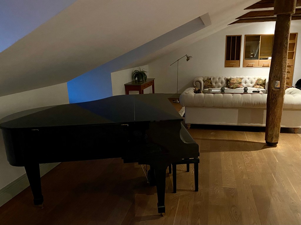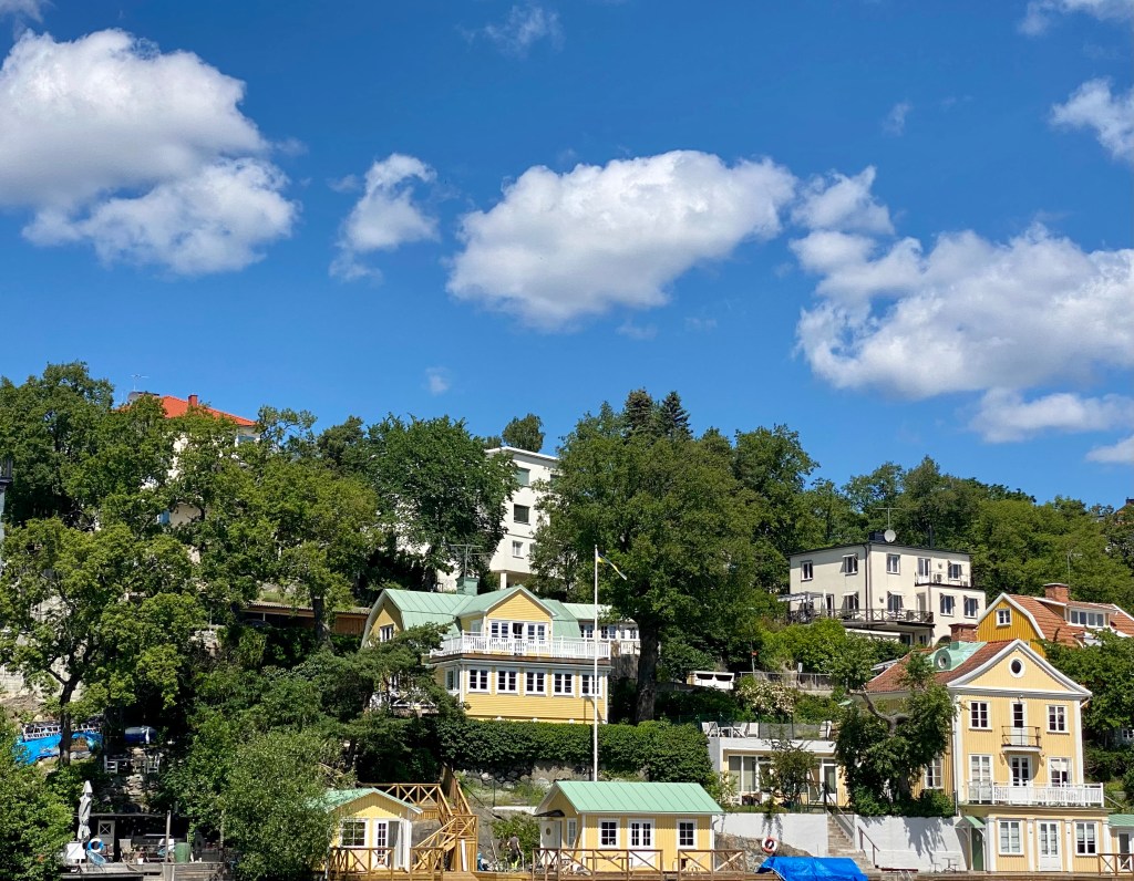 After our busy day yesterday, we opted for a more leisurely pace today. We’ve booked a boat to Drottningholm Palace at 1 pm so there’s a bit of time to enjoy our posh Airbnb. We’d been upgraded to the Prestige Suite which had 4 bedrooms, 2 baths, living room complete with a baby grand piano!, dining room, banquet room and library. Very swish!