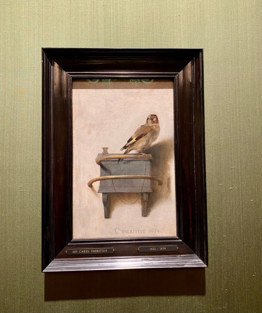 An unexpected favourite is a simple painting by Carel Fabritius entitled The Goldfinch painted the year he died in a massive explosion of gunpowder in Delft.