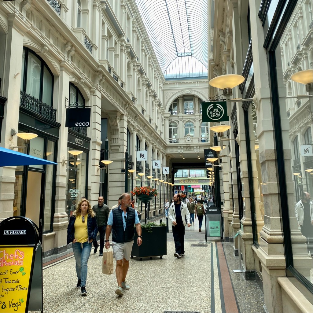 Before continuing my explorations in the Museum Sector, I headed off in search of lunch and ended up at De Passage. It is the only remaining covered shopping arcade in the country boasting a high, glass ceiling which allows in lots of light. The beautiful airy design of the arcade is reminiscent of the Galeria in St Petersburg and the GUM in Moscow; they aren’t built over streets but the feeling is the same. All of them are beautiful places to shop for things that you don’t need.