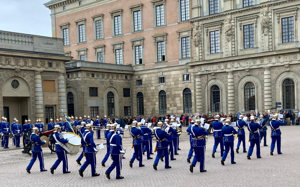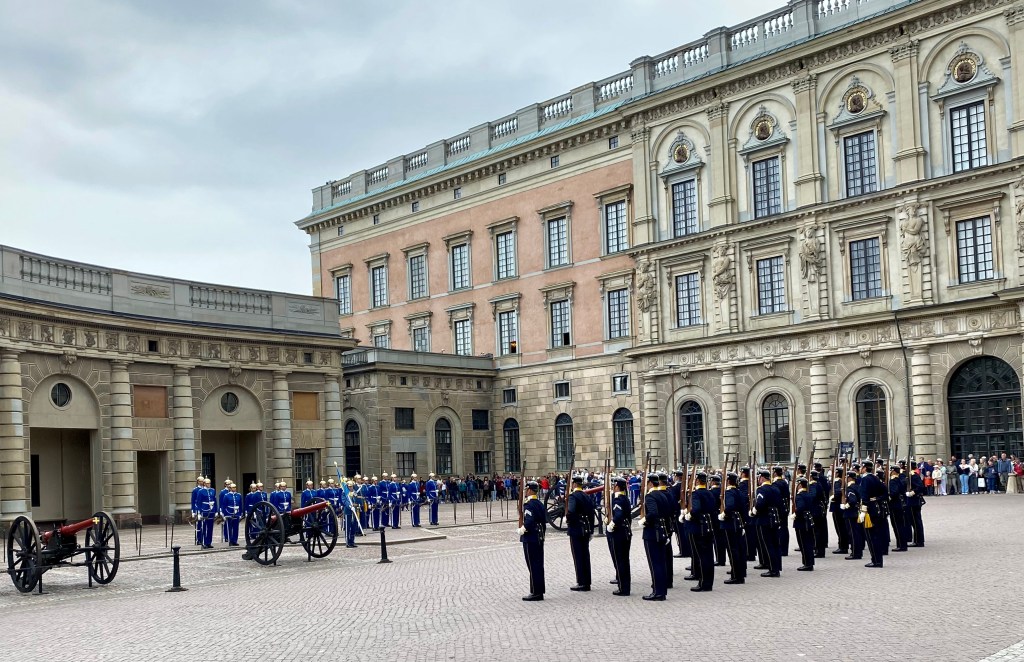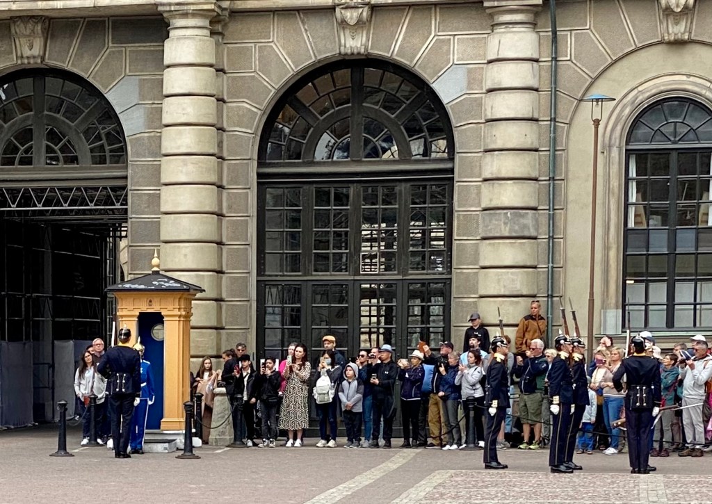 Next stop was the Royal Palace which took 57 years to build because the treasury was supporting all the wars being fought in the name of the Swedish crown at the same time. Finished in 1754, in the Italian baroque style, it was the residence of the Royal family for centuries. The current Royal family opted to live out of the city at Drottningholm Palace so their children could live a bit less in the public eye.