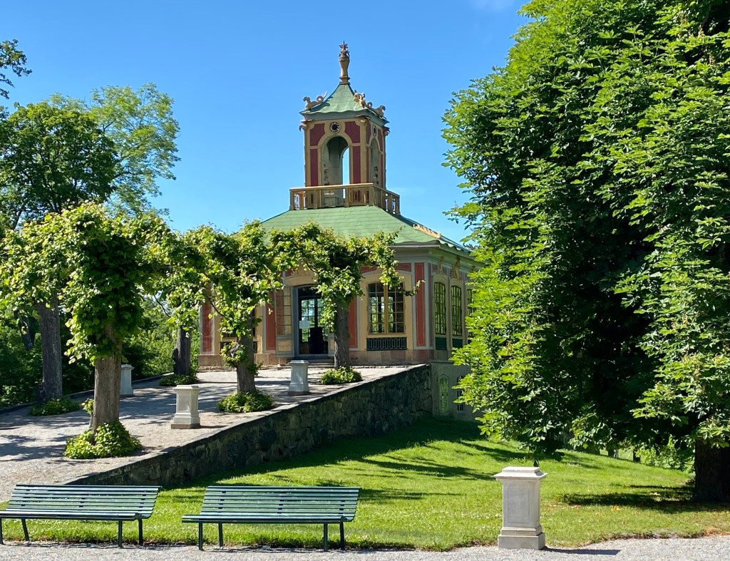 We finally reach our destination, Kina Slott, a Chinese-inspired Royal pavilion originally built between 1753 and 1769. In addition to the main pavilion, The Silver Chamber, The Confidence, and The Volière are found here.