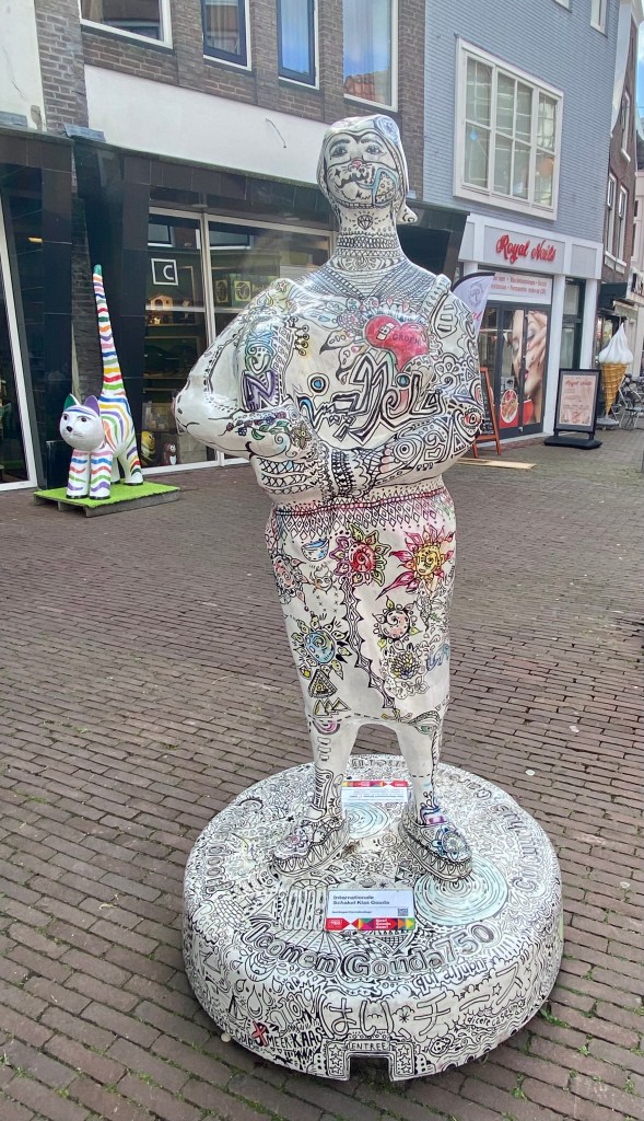 Also while wandering I pass the Church of St. John and the Gouwekerk. It’s too nice a day to be inside so I skip the tours of their interiors and enjoy the beautiful weather. There’s also lots of street art to enjoy maybe to celebrate the 750th anniversary?