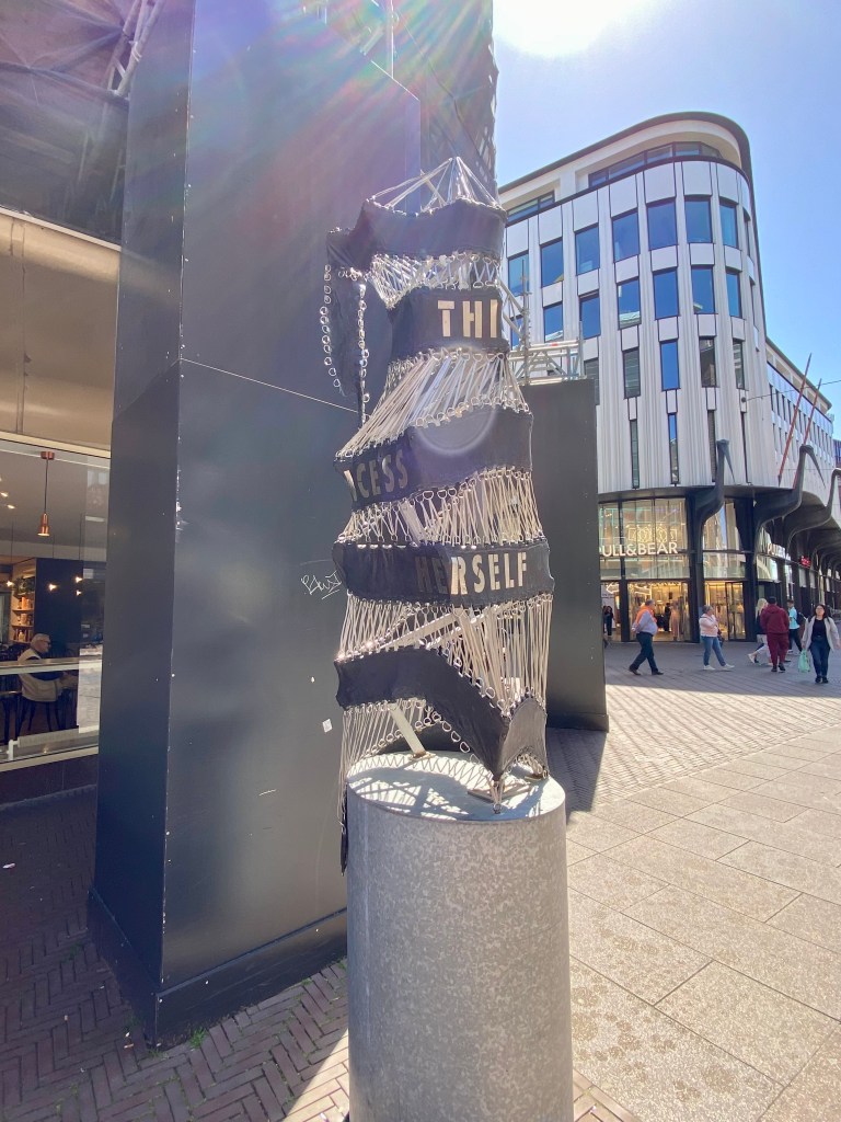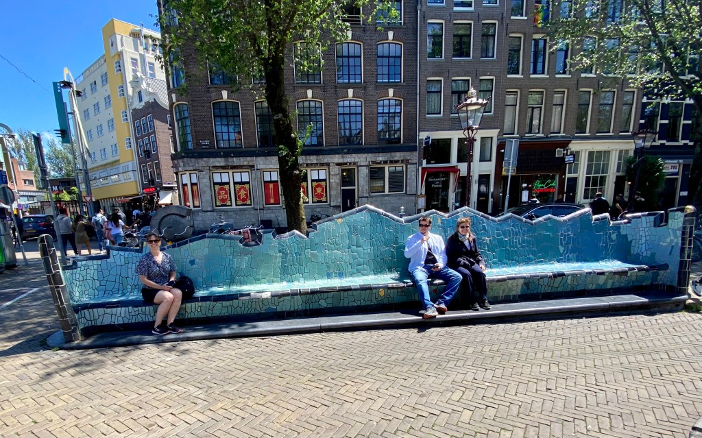 Passing the Oude Kerk on the way to the Centrum, I came across a statue of Geertruyt van Oosten. After being dumped by her fiancé she was said to have lead a very pious life She was considered very holy and manifested miraculous stigmata. She’s not part of the Ceramics Route but here she is!
