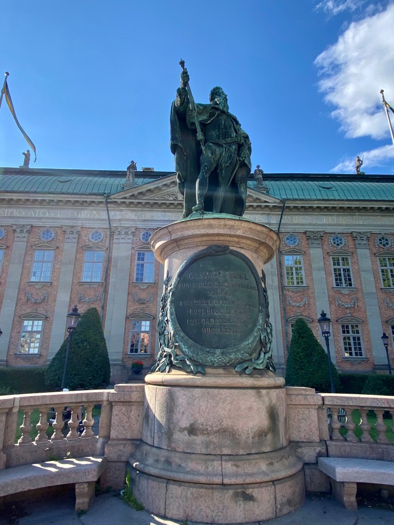 Stortoget was the site of the Stockholm Blood Bath when, despite a negotiated amnesty, the Danish king orders the execution of 86 Swedish nobles in the main square before setting the Danish army loose to rape and pillage the city. One young noble was late to the party and wasn’t executed though his father was. Over the next three years, Gustav recruits a giant peasant army which marched to the city. The Danes had already left when they arrived so no liberation of Stockholm was necessary. Gustav became king of Sweden on June 6, 1523 at the age of 23 and is revered as a hero.