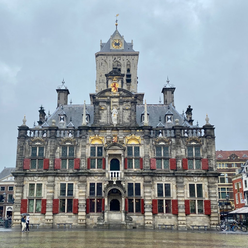 The next stop on the Ceramics Route was to have been The ‘Ceramic Map’; a map of Delft from the 17th century, made of ceramic and mosaic. Sadly, my lack of navigational skills and a dearth of natives, frolicking in the rain who knew what I was talking about, scuppered that part of my plan. In the meantime, i snapped a pic of the beautiful City Hall.