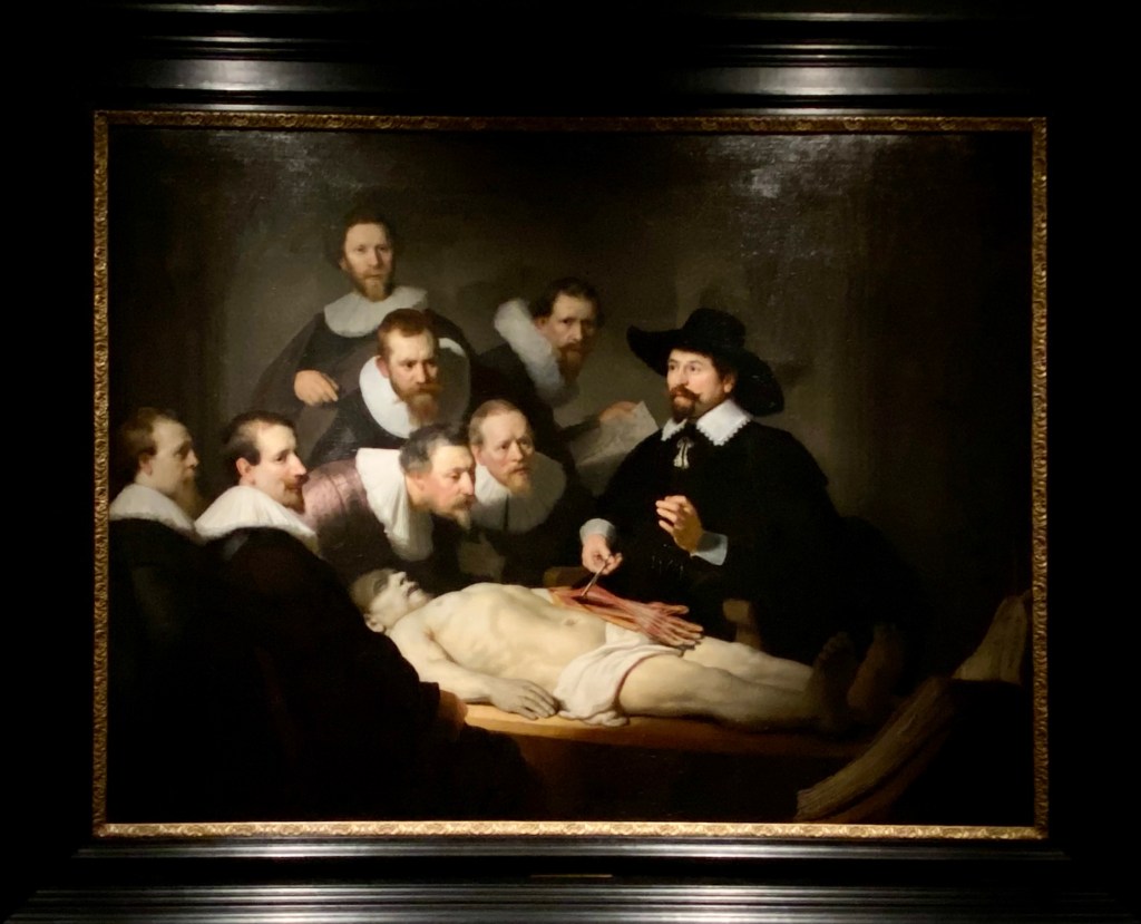As promised, Rembrandt van Rijn’s The Anatomy Lesson of Dr Nicolaes Tulp was one of the featured works of art. Rembrandt portrayed the surgeons in action, and they are all looking at different things. The detail and lighting is truly spectacular..
