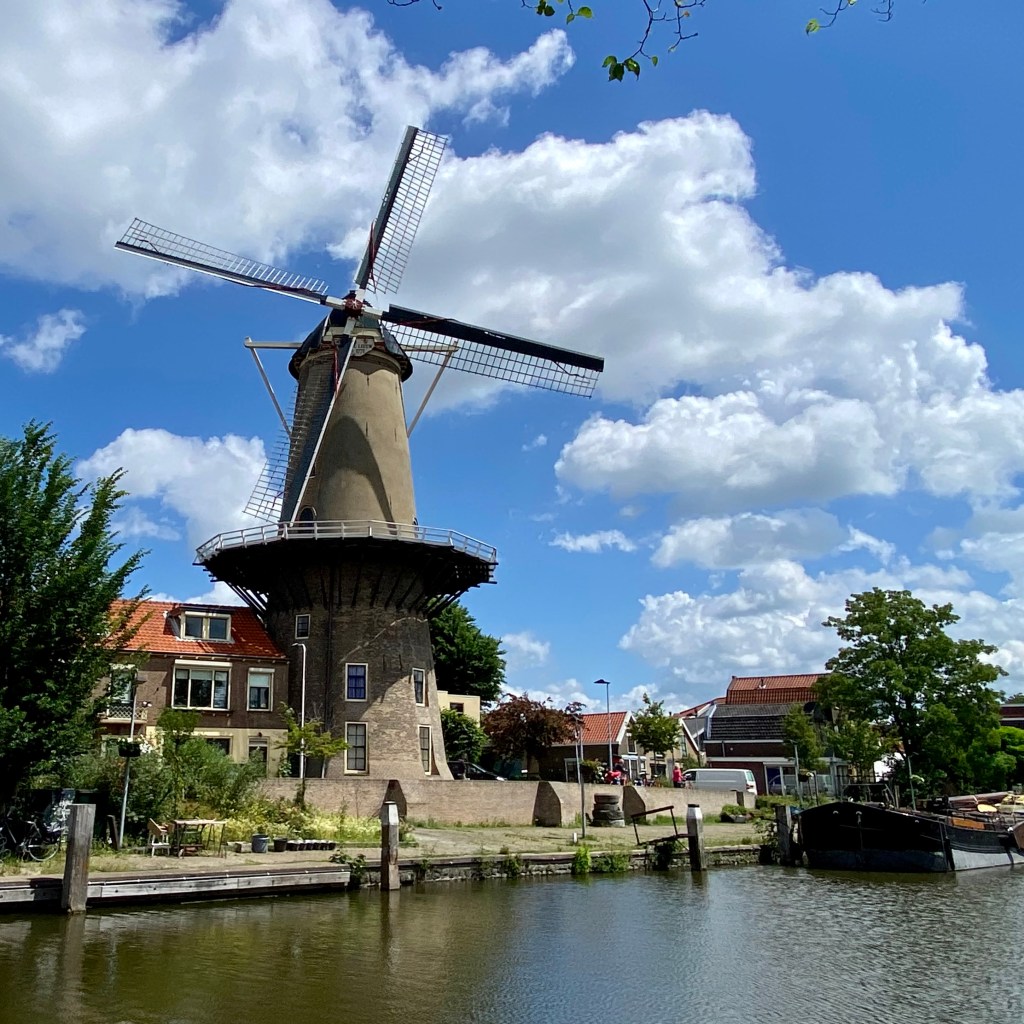 Time for a bit more exploring. Since the centre of Gouda is encircled by canals wandering along the canals seemed a great way to see the city and its wonderful architecture. I wanted to check out the Molen De Roode Leeuw and serendipitously I spy it on my meanders.  The Red Lion Windmill is a working mill that was constructed in 1727 and has been restored in recent decades.