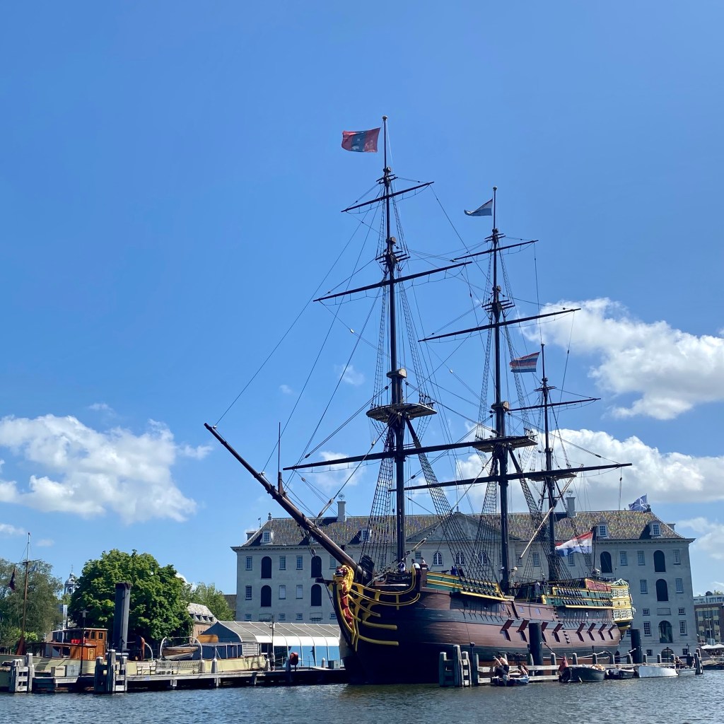 By now, I’m getting drenched and decide an inside activity is in order so I head to the Vermeer Centrum. Johannes Vermeer of Girl with a Pearl Earring fame lived and worked in Delft his whole life. The museum provides some insights to Vermeer’s life, family and work. There are true-size reproductions of all his works but sadly none of the originals are in his home town. Not sure it’s a must do but it was a nice respite from the rain, lol! I did really enjoy Girls with Pearls by Carolien Sikkenk so I’ve inserted that below.