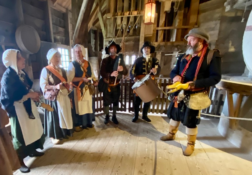 Next stop is the windmill. The one we are visiting is called Cat and is used to bring chalk and minerals to make paint. While we were touring a group of musicians came to sing a milling song. I was fascinated with the instrument that was a wooden shoe with a flap that made a clapping sound. Thankfully they didn’t appear to be selling those or it’s have to figure out what to throw away, lol!