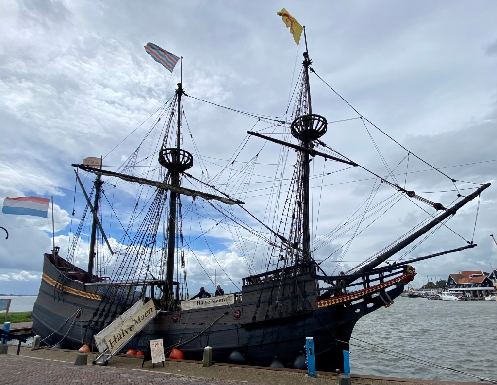 The harbour-front boasts beautiful old ships, a ferry to Marken (sadly no time for that) and a replica of the Halve Maen, the Dutch East India boat captained by Henry Hudson that sailed into what is now New York harbour in 1609. The other interesting feature is Het Praathuis (the talking or liars’ house). Most fishing villages have a liars’ bench where men can weave tale tales about the fish they caught and those that got away. People in Volendam like their luxuries so they have a little house on the harbour front for this purpose.